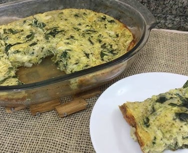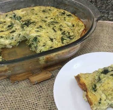 Ingredientes: 2 xícaras de espinafre picado, 1 colher de sopa de azeite, 1/2 colher de chá de alho amassado, 3 ovos, 1/2 abobrinha picada em rodelas finas, 30g de queijo mussarela ou parmesão ralado, sal, pimenta-do-reino e cheiro verde a gosto.