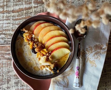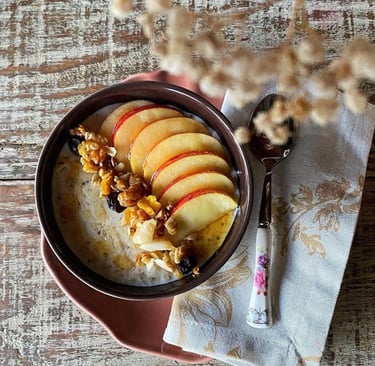 Ingredientes: 1/2 xícara de farinha de aveia em flocos, 2 xícaras de chá de leite, 2 colheres de sopa de granola, 1/2 limão, 1 maçã com casca picada em fatias finas, 2 colheres de sopa de mel, canela.
