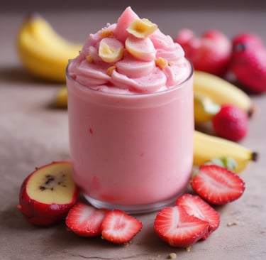 Ingredientes: 1 cará grande, 1 banana caturra madura, 1/2 caixa de morango.