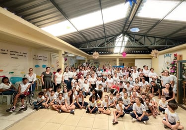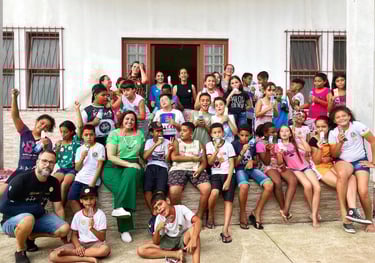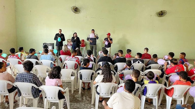 Dinâmica sobre a importância do reforço escolar à crianças com dificuldade de aprendizagem e celebração do mês das crianças.