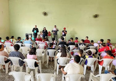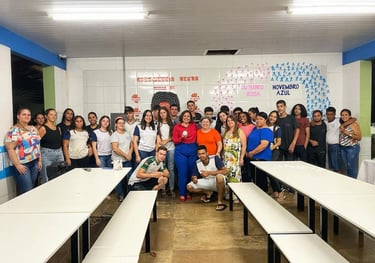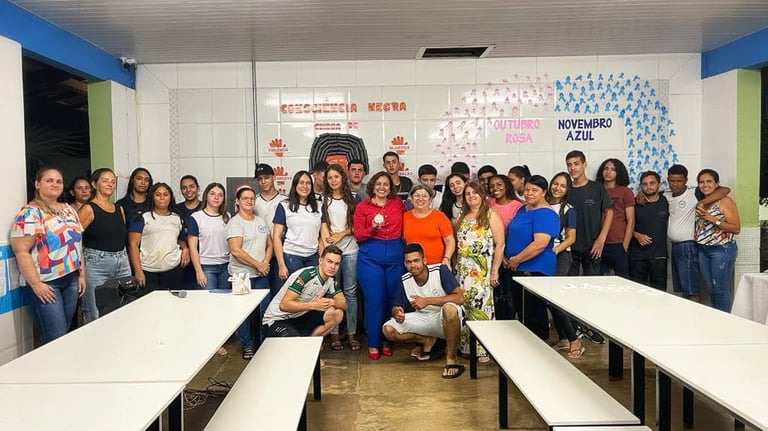 Palestra de conscientização sobre Outubro Rosa e Novembro Azul para professores e adolescentes do Engenho do Ribeiro.