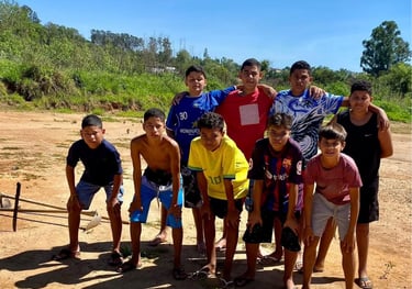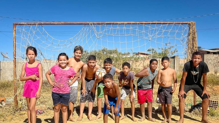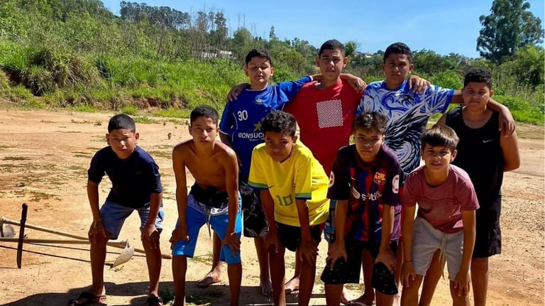 Limpeza de campinho e doação de bola para crianças do Bairro São Bento, com encontros para falar sobre o futuro delas.