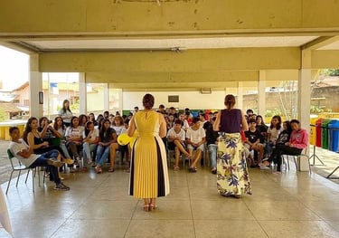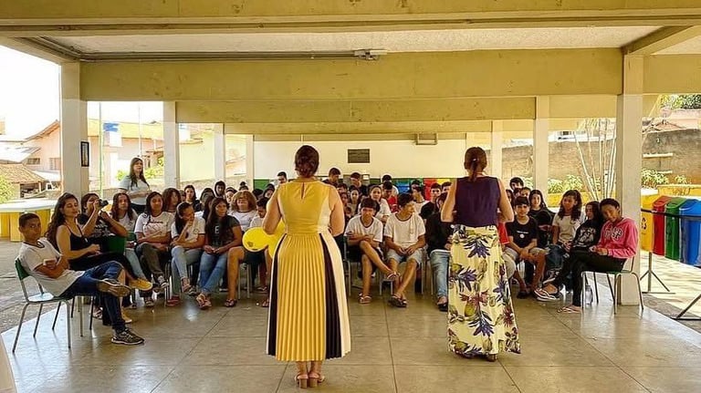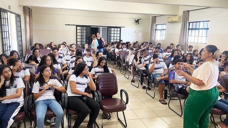 Palestra sobre combate à violência contra as mulheres, para ajudar na conscientização dos adolescentes.