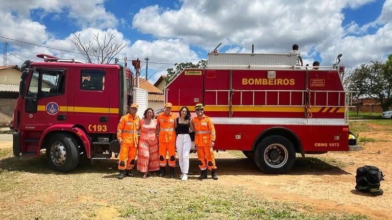Parceria com o Corpo de Bombeiros feita para incentivar crianças a conhecerem as profissões. Evento em praça aberta.